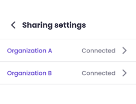 - Select "Sharing settings" and find their organization in the list. There, they can also see the status of the connection.