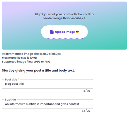 Here, you can add an optional "Cover Image" and begin by filling in the "Title" and "Subtitle".