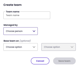 By pressing the "+ Create Team" button on the right side of the screen, a box will appear where you can easily enter the desired team name, who will lead the team, and whether you want to base the team on assigned properties, such as location, type of activity, etc.