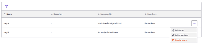 Once the team is created, you can easily edit it by clicking on the three dots at the end of the row and selecting "Edit Team." You can then change the team name, team leader, and the properties on which the team is based.