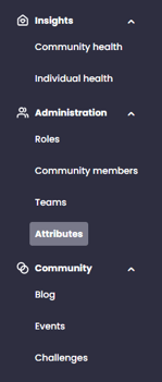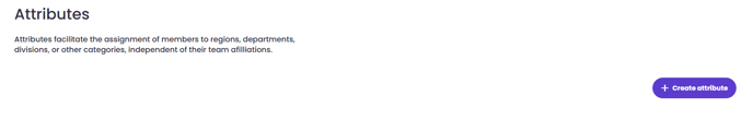 Here, you can create new attribute categories by pressing the "+ Create attribute" button on the right side of the screen. For example, you can create the category "Location" and add various "cities, municipalities, counties, and towns" as attributes. The attributes can be actively used in the creation and distribution of events and challenges, among other things. Members can be associated with one attribute in multiple categories.
