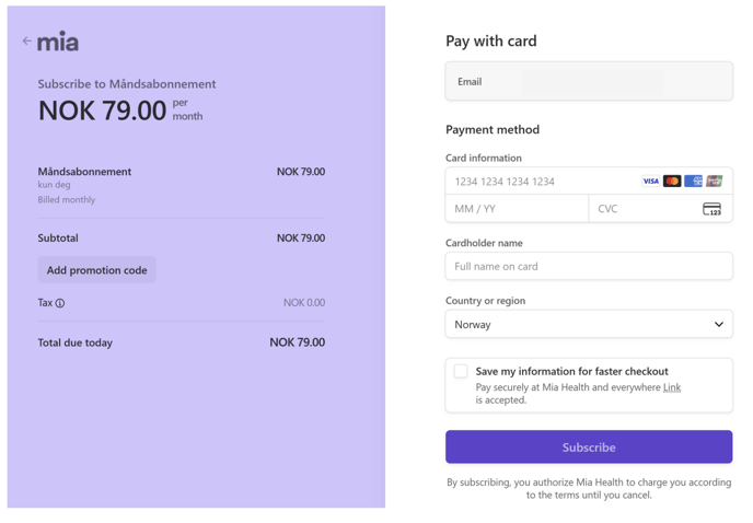Note: If you purchased the subscription via the website, you need to visit miahealth.no again to manage it.