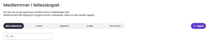 Når du er logget inn i Mia Insight er det enkelt å administrere og legge til nye medlemmer. Ved å klikke på "Medlemmer i fellesskapet" under "Administrasjon", vil du kunne legge til og sende invitasjoner til nye medlemmer.
