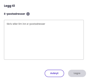 Ved å trykke på knappen '+ legg til' på høyre side av skjermen, får du opp en boks der du enkelt limer inn flere e-postadresser. Merk at du må separere disse med et komma, "enter" eller linjeskift.
